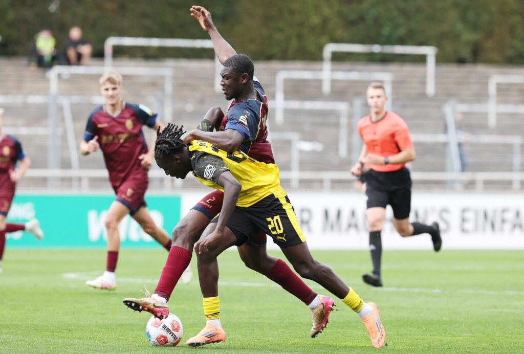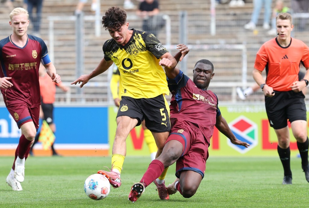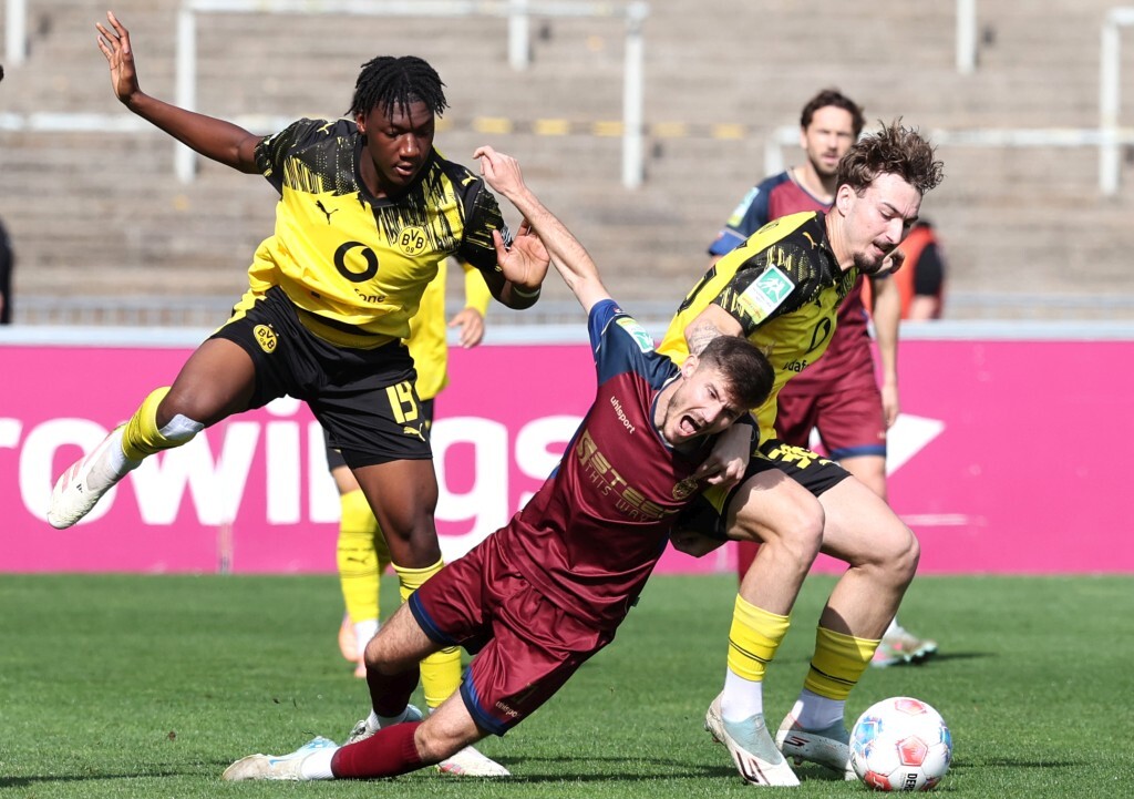Beide Teams begannen den zweiten Durchgang personell unverändert und Dortmund war gezwungen, weiterhin das Spiel zu gestalten. In der 57. Minute wurde Pharell Kegni vor dem Strafraum gelegt, der anschließende Freistoß von Michael Eberwein blieb allerdings in der Mauer hängen.