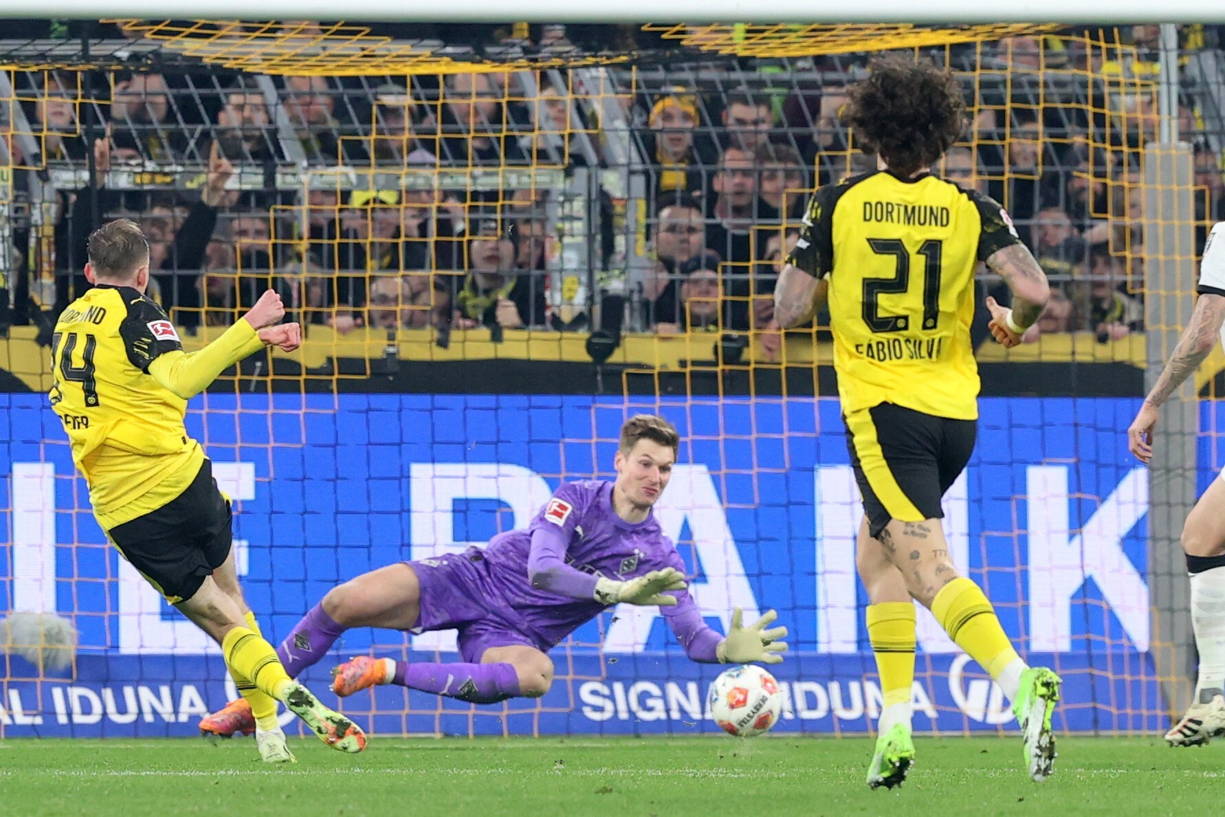 Im Gegenzug mussten erneut die Gladbacher durch Kobel gestoppt werden. Kurz vor der Pause kam noch einmal etwas Energie in ein bis dahin eher unspektakuläres Spiel. Dennoch blieb es beim Pausenpfiff bei der durchaus verdienten 1:0-Führung für die Schwarzgelben, die vor allem auf einer starken ersten halben Stunde beruhte. Danach brachte man sich mit vielen Ungenauigkeiten um den Zugriff und so musste Kobel schließlich die knappe Führung retten.