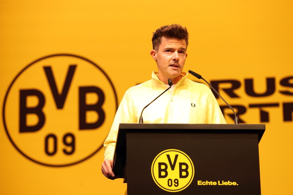 [14:10] Er möchte auch, dass mehr Frauen in verantwortliche Positionen beim BVB kommen und beendet seine Rede mit dem Ruf nach Unterstützung. Nun folgt Lars Ricken.