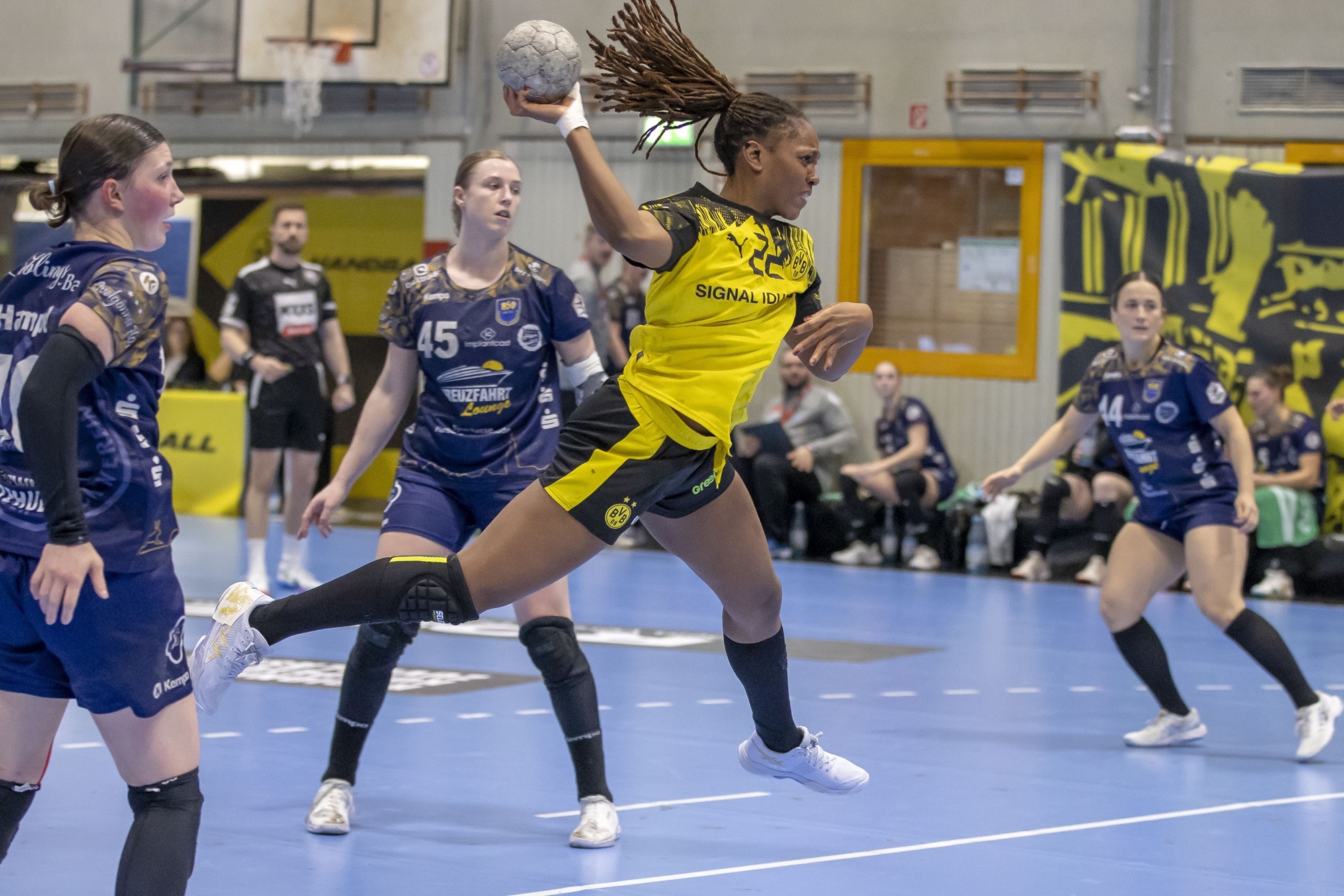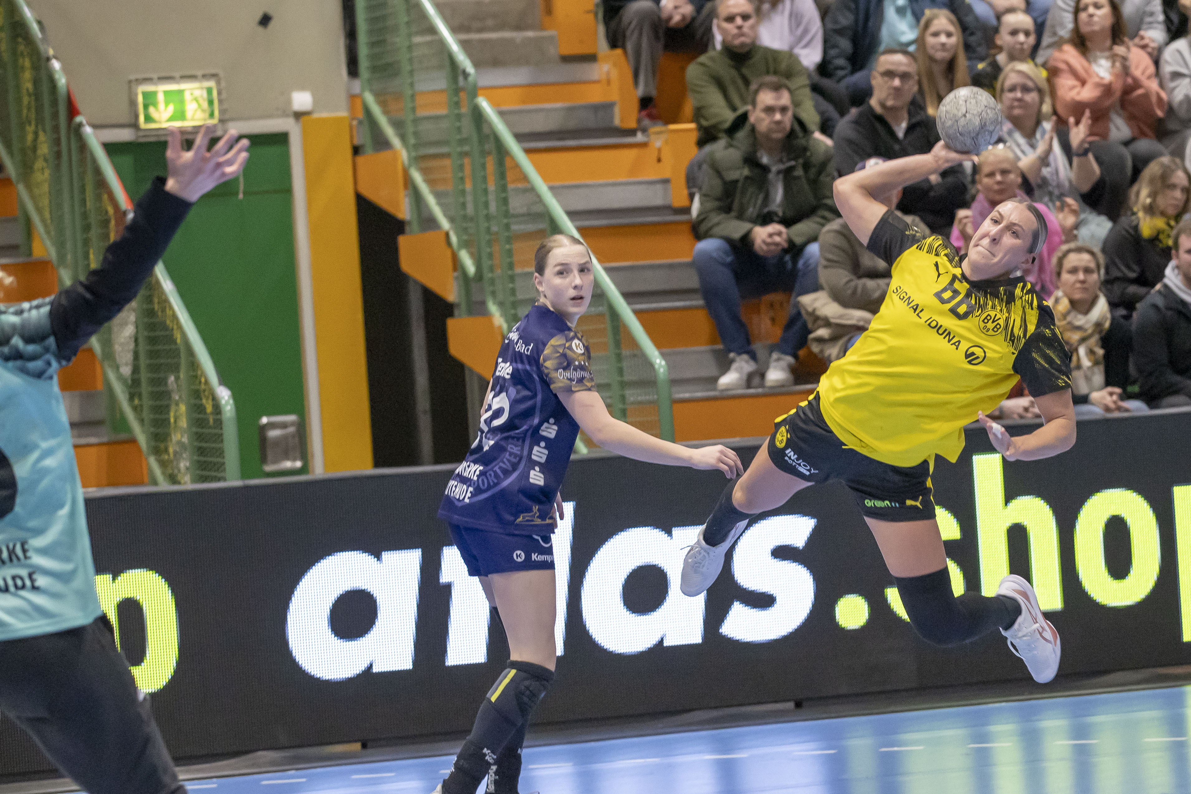 Unsere Handballfrauen sind in der Liga derzeit sehr erfolgreich. In der EHF Champions League mussten sie allerdings zuletzt im ungarischen Debrecen eine Niederlage hinnehmen. Nach einer katastrophalen ersten Halbzeit unterlag man dem DVSC Schaeffler mit 23:29 und verpasste damit die vorzeitige Qualifikation für die Play-offs. Es galt, zum Tagesgeschäft zurückzukehren. Die Gäste vom Buxtehuder SV hatten Erfolgserlebnisse im Gepäck. Nach dem Unentschieden gegen FRISCH AUF Göppingen gewannen die Spielerinnen aus der Hansestadt das Nordderby gegen den VfL Oldenburg mit 35:31 – es war ihr erster Saisonsieg nach 14 sieglosen Partien. Das Hinspiel gewannen unsere Borussinnen mit 34:29, überragend waren damals Alina Grijseels und die Ex-Buxtehuderin Lisa Antl. Auf dem Papier sollte es eigentlich eine klare Sache sein, aber in der Halle war man der Verzweiflung nahe.
