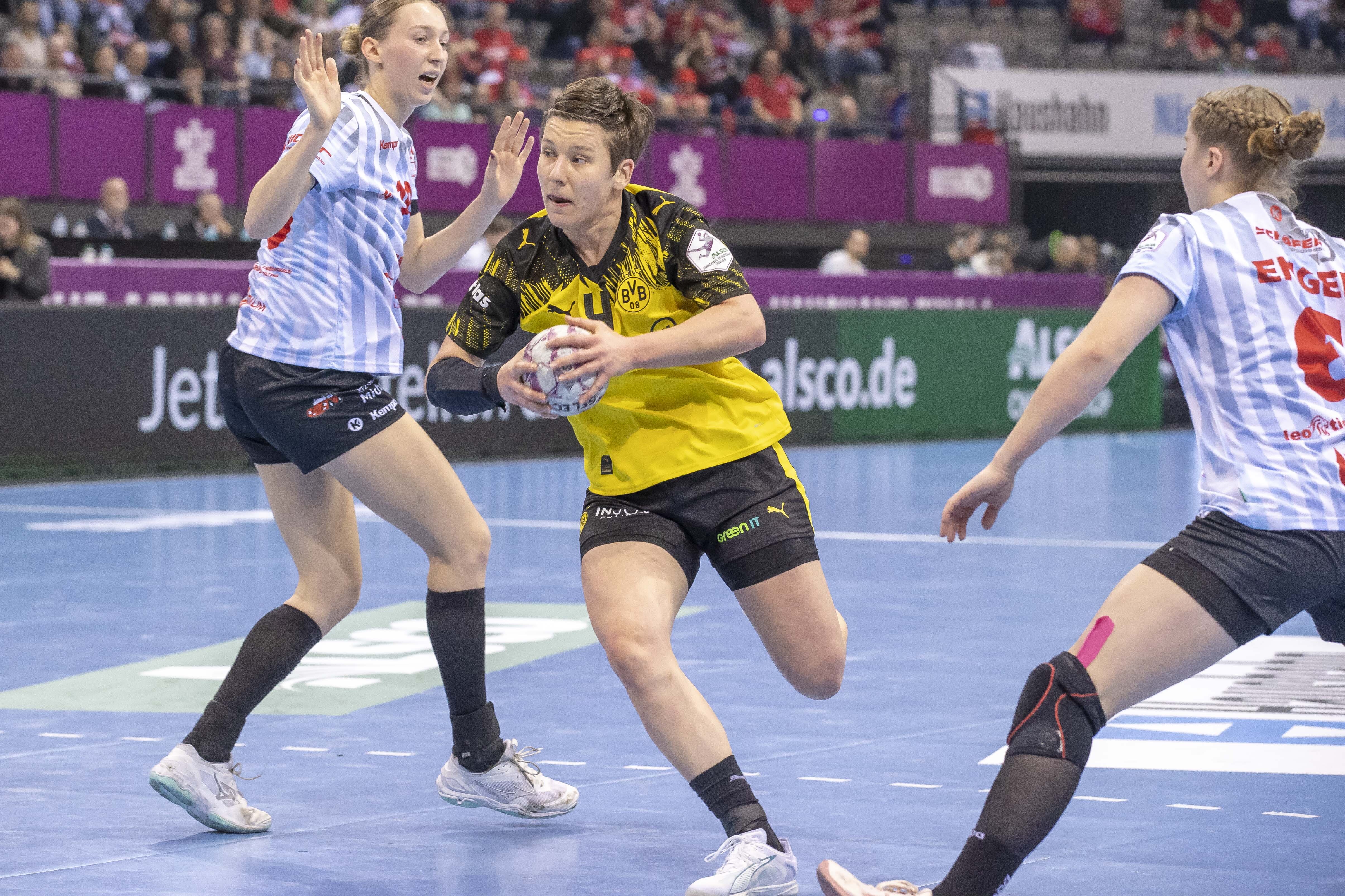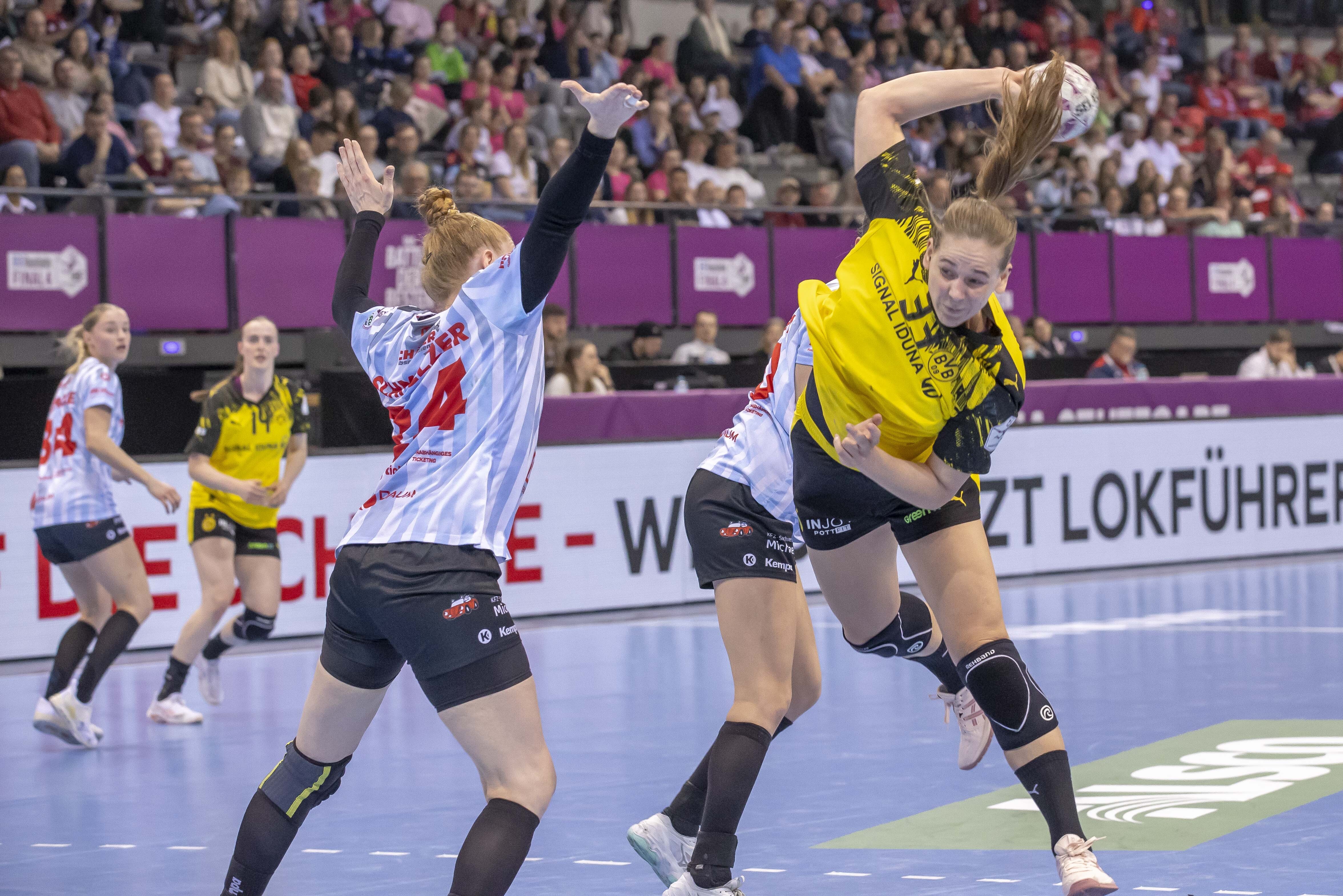 Nach einem überzeugenden Sieg im Halbfinale gegen die HSG Blomberg-Lippe trafen im Finale des DHB-Pokals erstmals der BVB und die HSG Bensheim-Auerbach aufeinander. Für den BVB war es die fünfte Finalteilnahme. Den bisher einzigen Pokalsieg feierte die Borussia im Jahr 1997, als die Handballerinnen unter der Leitung von Gustl Wilke mit 24:22 gegen den TV Lützelinden gewannen.