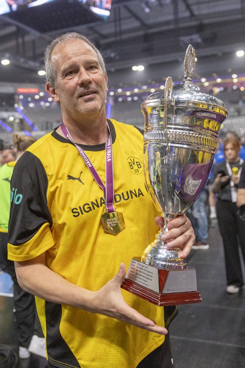 Alle waren sich einig, dass das bessere Team über die gesamten 60 Minuten gewonnen hatte. Vor der Siegerehrung wurde Guro Nestaker zur besten Spielerin des Turniers gewählt. Im Finale gelangen ihr sieben Treffer. Alina Grijseels und Alieke van Maurik waren jeweils sechsmal erfolgreich. Die Außen Lara Egeling und Kelly Vollebregt waren nicht so torhungrig wie im Halbfinale. Zusammen erzielten sie fünf Treffer. Dies zeigt die Stärke und Geschlossenheit des gesamten Kaders, die letztendlich für den Pokalerfolg verantwortlich war. Ab der 61. Minute war dann nur noch Feiern mit den Fans angesagt. Mitgefeiert hat sicherlich auch unser Trainer Henk Groener, der dem BVB nach langer Abstinenz noch einmal einen Titel schenken konnte. Vielleicht gelingt ihm ja noch das Double, seine Mannschaft wird dafür sicher alles geben.