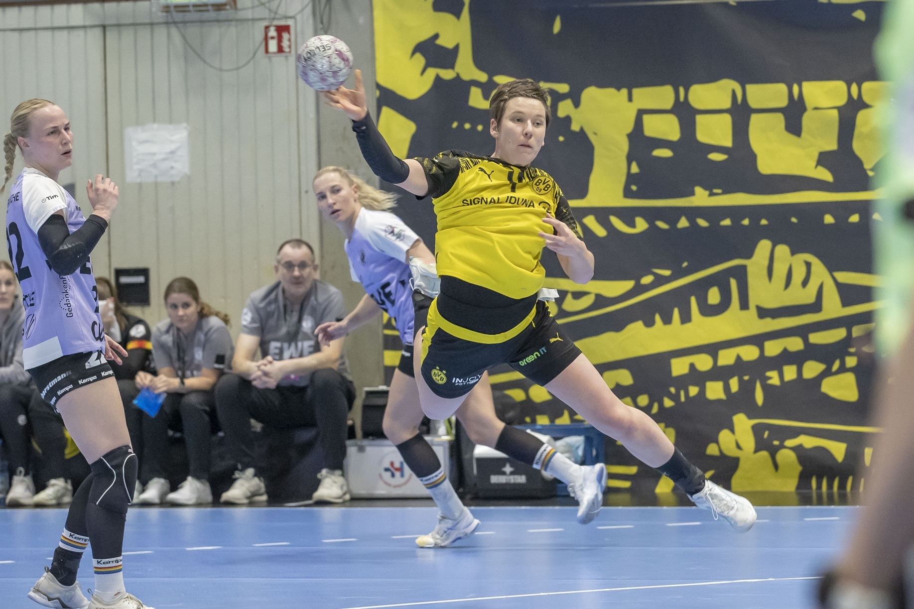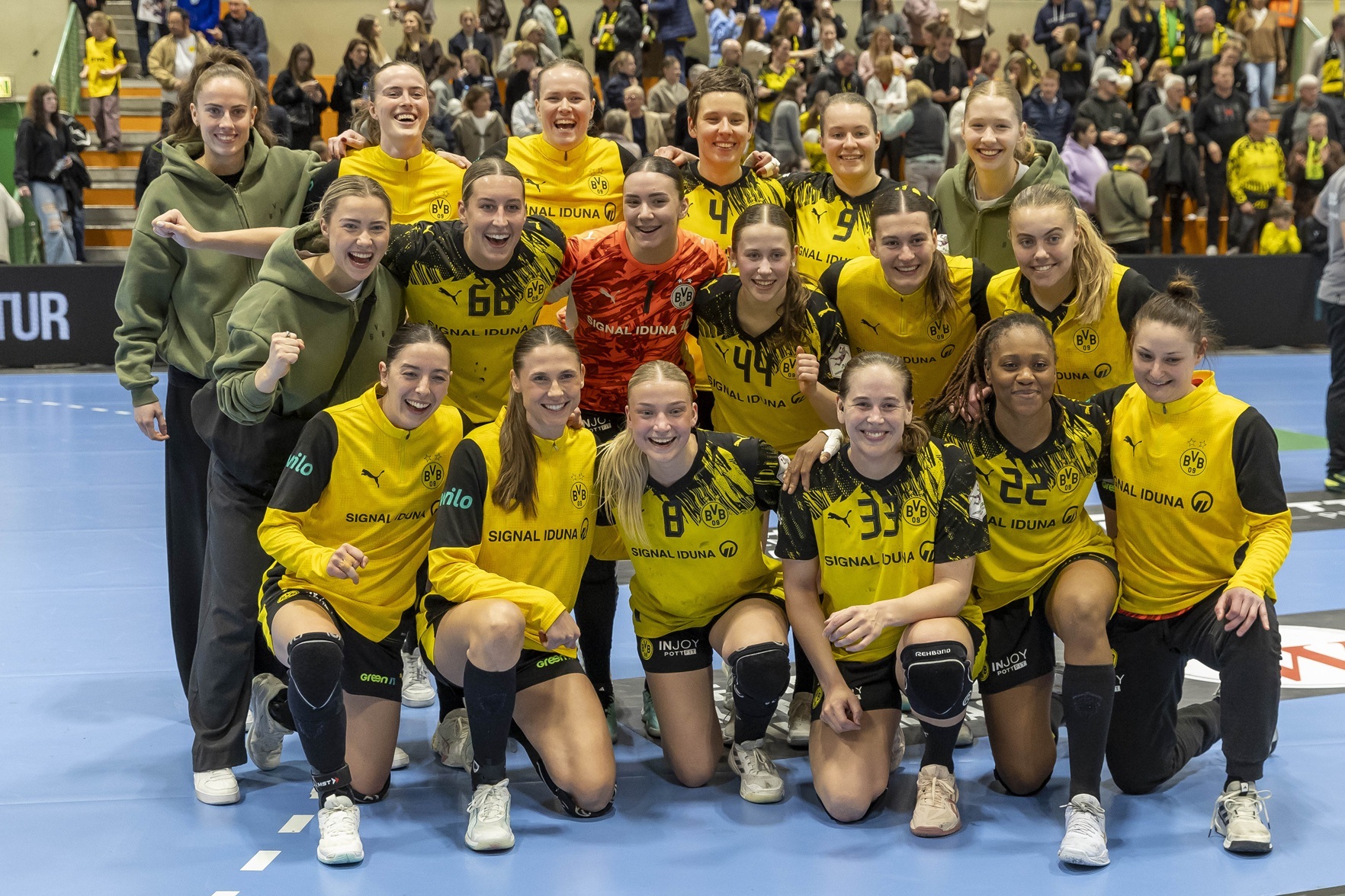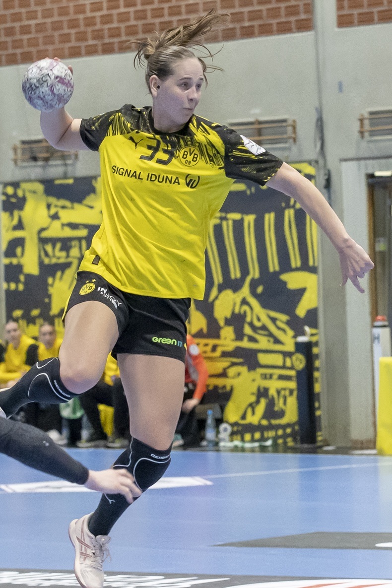Doch die Dortmunderinnen fingen sich erneut und stellten in der 44. Minute durch Kaja Kamp Nielsens Bude auf 27:22. Das Spiel blieb fahrig, sodass Oldenburg immer wieder näher herankommen, die Schwarzgelben aber auch stets den Abstand wieder vergrößern konnten. So traf Alina Grijseels in der 51. Minute zum 30:26.