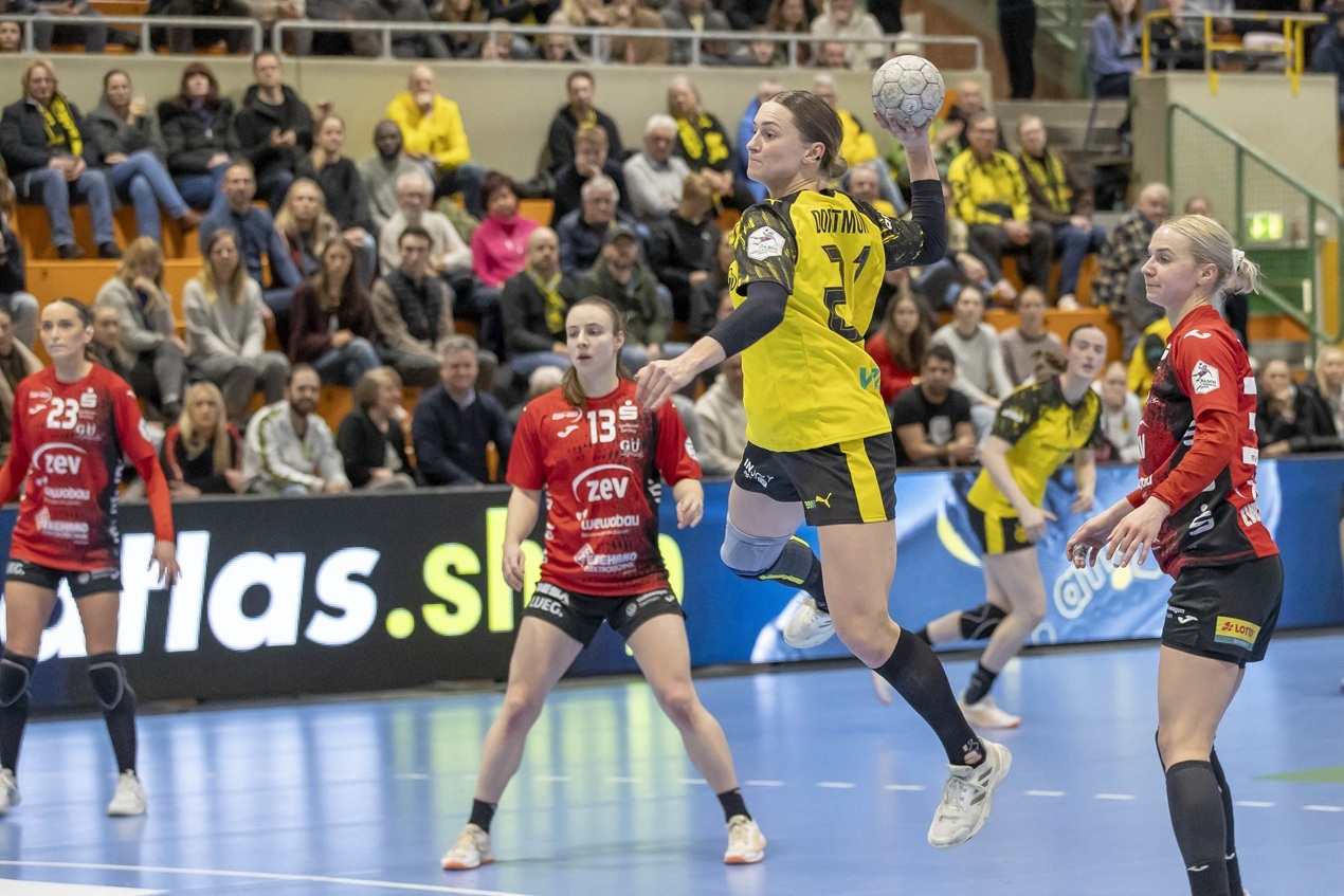 Die Dortmunderinnen machten damit weiter, womit sie vor der Pause aufgehört hatten: nämlich mit Torerfolgen. So erhöhte zunächst Alieke van Maurik auf 23:10 (31.), ehe Déborah Lassource zwei Siebenmeter verwandelte (34. und 35.) und auf 25:12 stellte.