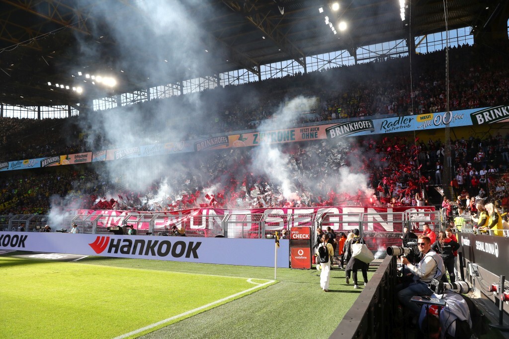 Natürlich hinderte auch ein maximal zur Hälfte gefüllter Gästeblock den BVB nicht daran, das Stadion mit 81.365 Zuschauern als ausverkauft zu melden. Vielleicht hatten die Freiburger aber auch alle zwei Karten gekauft, damit sie ein bisschen mehr Platz haben…