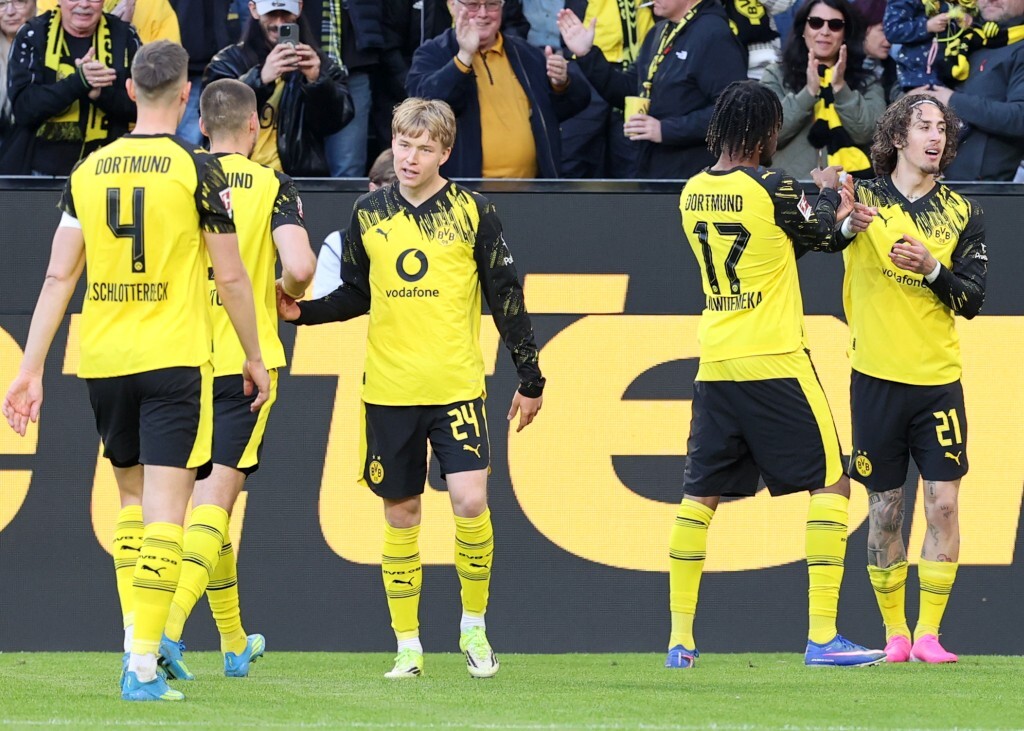 Auf dem Platz setzte sich der BVB von Beginn an in der Freiburger Hälfte fest. Wirklich zwingend wurde es jedoch nicht, bis Bensebaini Beier in der 7. Minute perfekt in die Tiefe schickte und dieser die erste Chance auf die Führung direkt eiskalt verwandelte. Nur 6 Minuten später legte Guirassy nach. Inacio verlagerte einen Konter klug auf die rechte Seite, Brandt machte Sachen, die ein Brandt halt so macht und chipte den Ball perfekt auf Guirassy, der den Ball nur noch an Atubolu vorbeispitzeln musste.