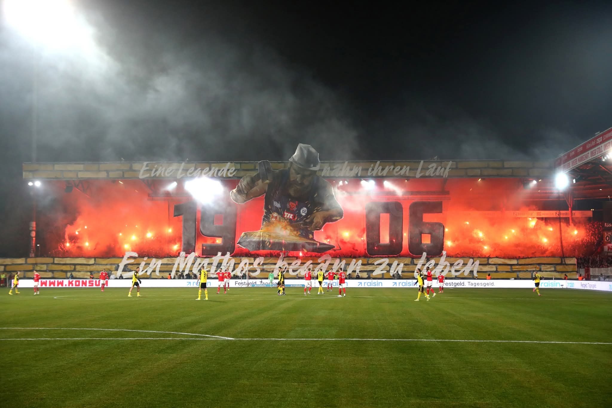 Zum Stadion wurde bereits viel gesagt und es ist wohl der Grund, warum der 1. FC Union zu einem Kultclub verklärt wird. Mit der Waldseite und einer Gegengerade komplett mit Stehplätzen, dazu die fehlende Anzeigetafel und die offenen Ecken, das Stadion ist und bleibt etwas Besonderes